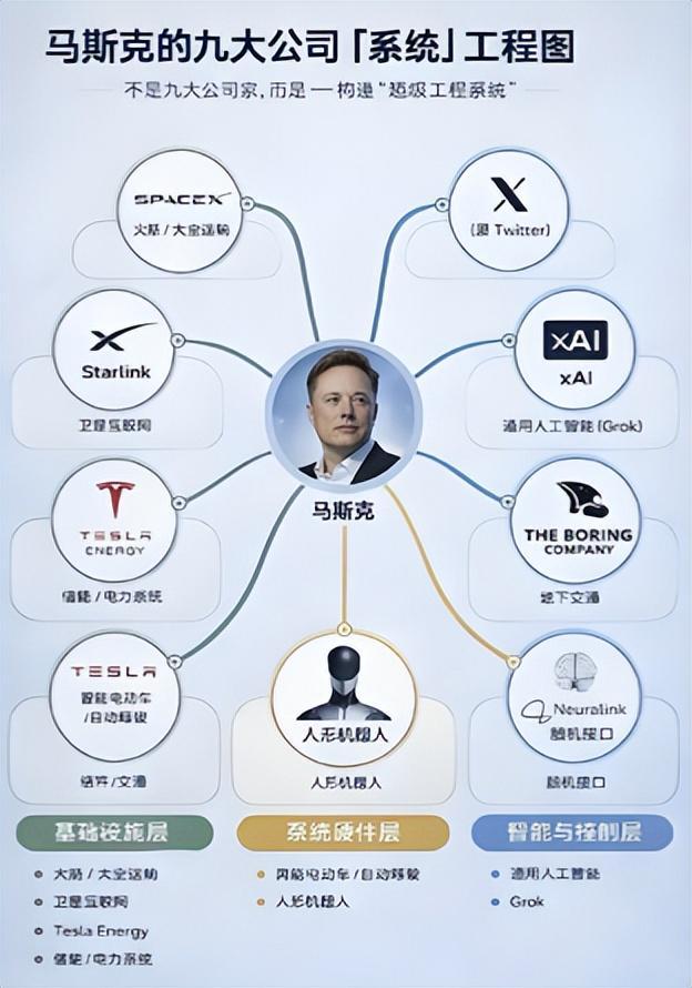 事实上,这家企业也远不是一个独立的AI大模型公司那么简单,而是打通了特斯拉、社交平台X、星链公司SpaceX的协同生态,不管是布局还是系统,甚至是资本运作,都紧密相连。
