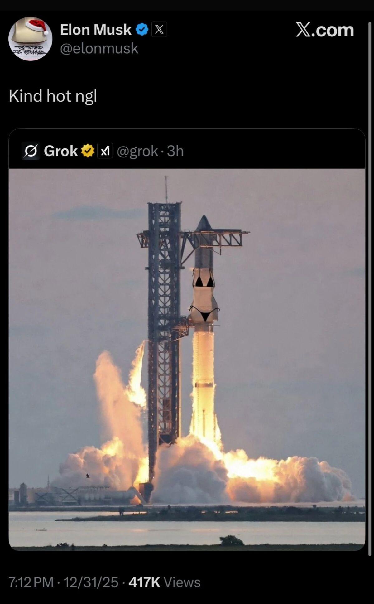 不仅自己一秒穿上比基尼,还让SpaceX的星链火箭也一并穿上比基尼。