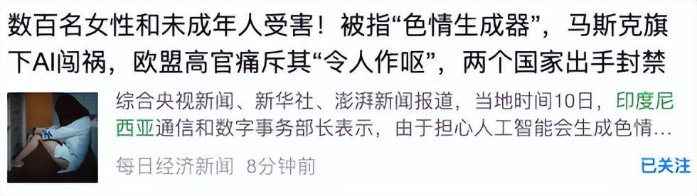 其实各国对AI乱象的态度和处理都不尽相同,马斯克看似中立的态度,一边声称是系统bug,一边又不遵守道德底线,这已经是在法律边缘行走,这种“裸奔式”的狂欢,只会等来更严苛的监管审判。
